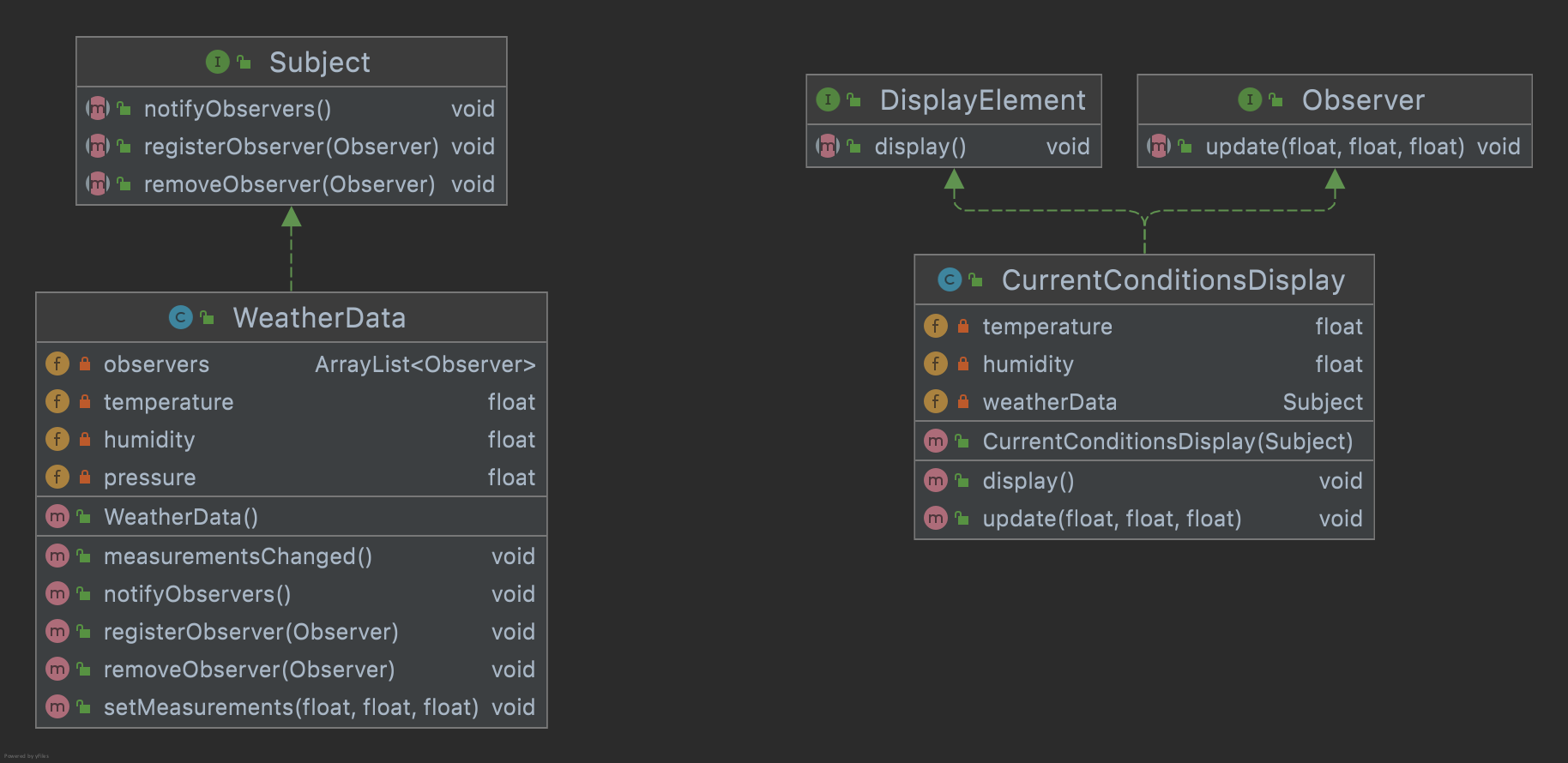 CurrentConditionsDisplay currentConditionsDisplay = new CurrentConditionsDisplay(weatherData);