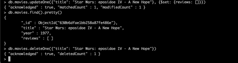 db.movies.updateOne(title: "...."}, {$set: {reviews: []}})