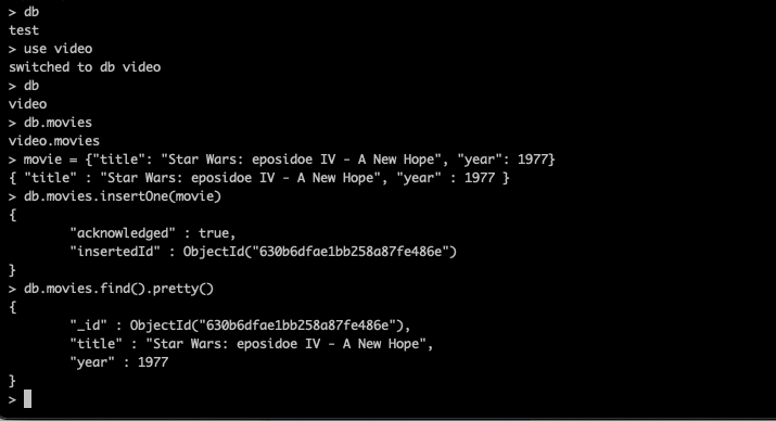 - db.movies를 입력하면 현재 데이터베이스의 movies 컬렉션을 반환한다.