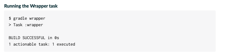 로컬에서 Gradle을 설치한 경우에는 아래와 같이 wrapper task를 실행시킨다.