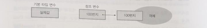 기본 타입 변수는 스택 영역에 직접 값을 가지고 있지만, 참조 타입 변수는 값이 아니라 힙 영역이나 메소드 영역의 객체 주소를 가진다.