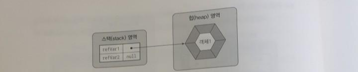 참조 타입 변수는 힙 영역의 객체를 참조하지 않는다는 뜻으로 null 값을 가질 수 있다. null 값도 초기 값으로 사용할 수 있기에, null로 초기화된 참조 변수는 스택 영역에 생성된다.