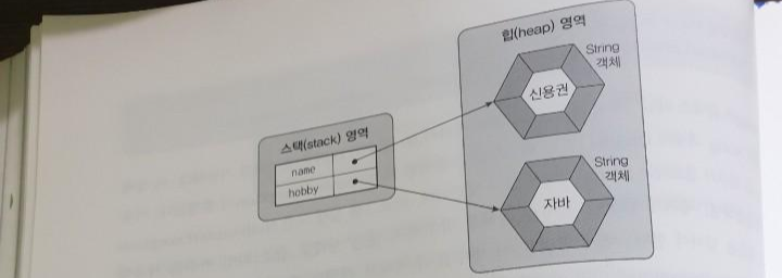 문자열은 String 객체로 생성되고 변수는 String 객체를 참조한다.
