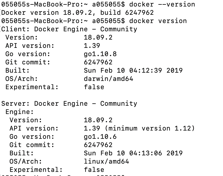 다운로드 이후, 터미널에서 Docker 버전을 확인합니다.