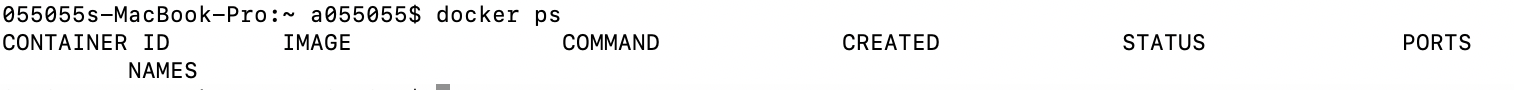 컨테이너 목록을 조회하는 명령어인 docker ps를 입력하면 아래와 같이 나옵니다.