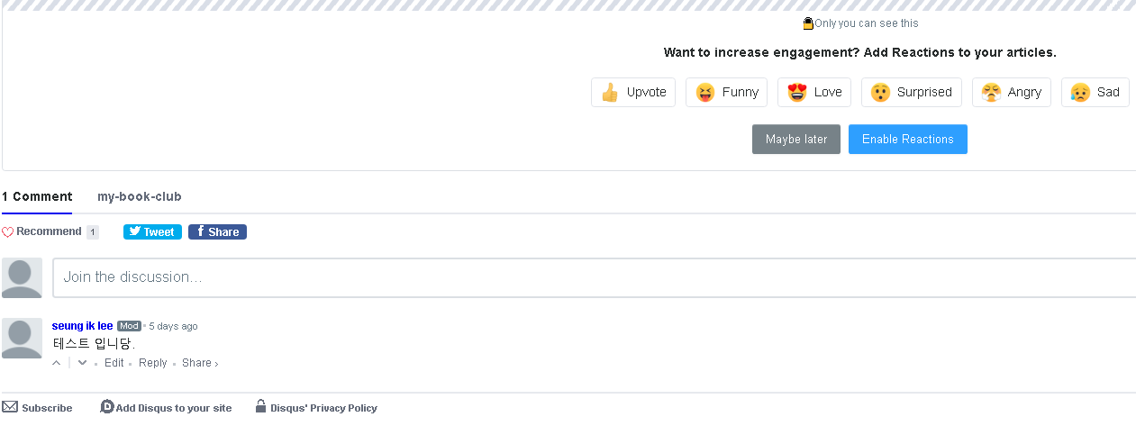 댓글 기능을 간단하게 구현할 수 없을까 하고 검색을 하다가 Disqus를 찾게 되었습니다.