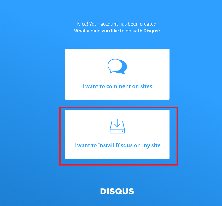 먼저 홈페이지에 가서 회원가입을 한다음, 아래 사진과 같이 'I want to install Disqus on my site'를 클릭합니다.