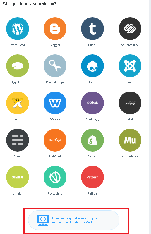 하단의 'I dont'see my platform listed, install manually with Universal Code'를 클릭합니다.