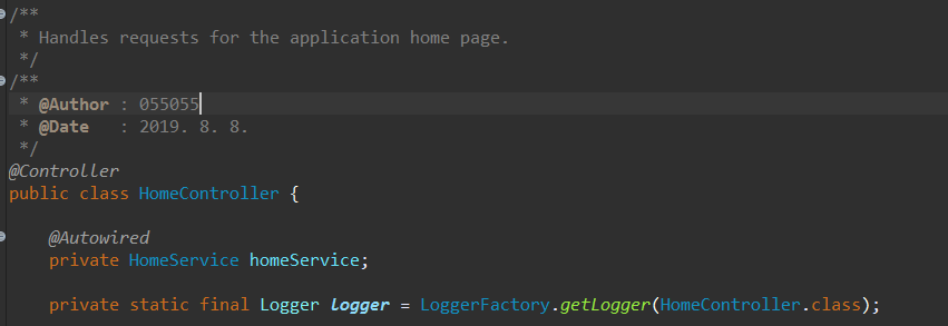 컨트롤러 위에서 shift + alt +j 를 누르면 우리가 설정한 주석이 나타납니다.
