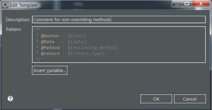 Insert Variable을 선택하면 ${user}와 같이 사용할 수 있는 변수를 선택할 수 있습니다.