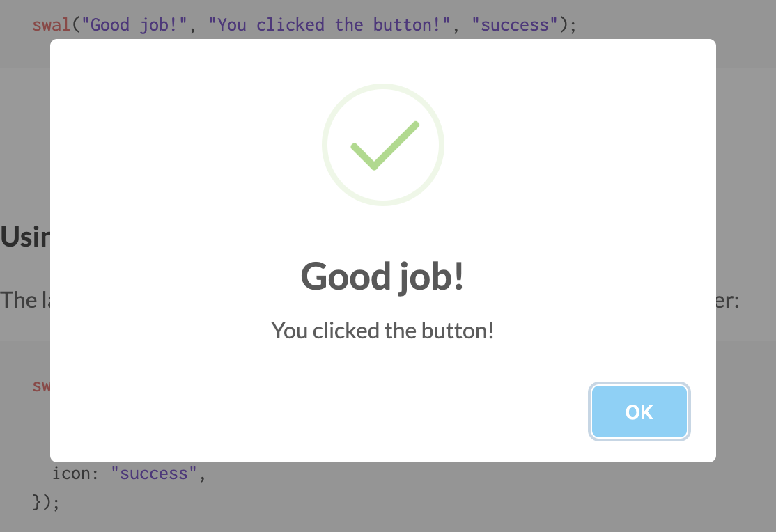 swal("Good job!", "You clicked the button!", "success");