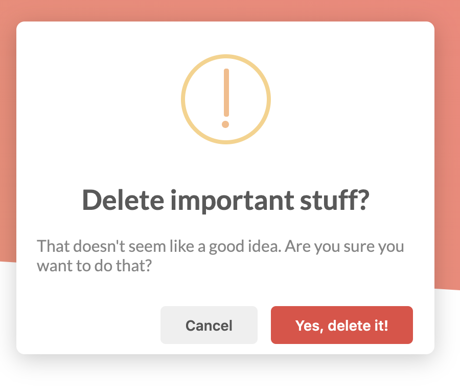 You've arrived! How lovely. Let me take your coat. Oops! Seems like something went wrong! Delete important stuff? That doesn't seem like a good idea. Are you sure you want to do that?